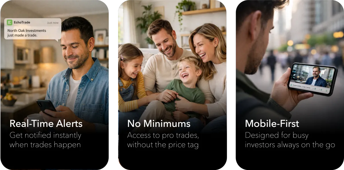 Echo Trade is a monthly subscription that gives you access to professional portfolios and real-time trade alerts. Plans start at $9.99 per month with a 7-day free trial. You can upgrade anytime to unlock access to more portfolios inside the platform.